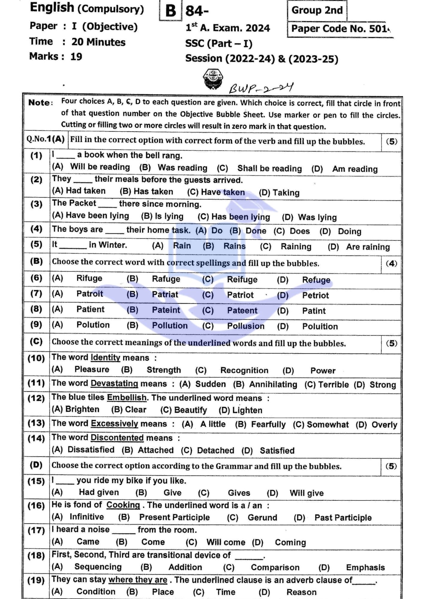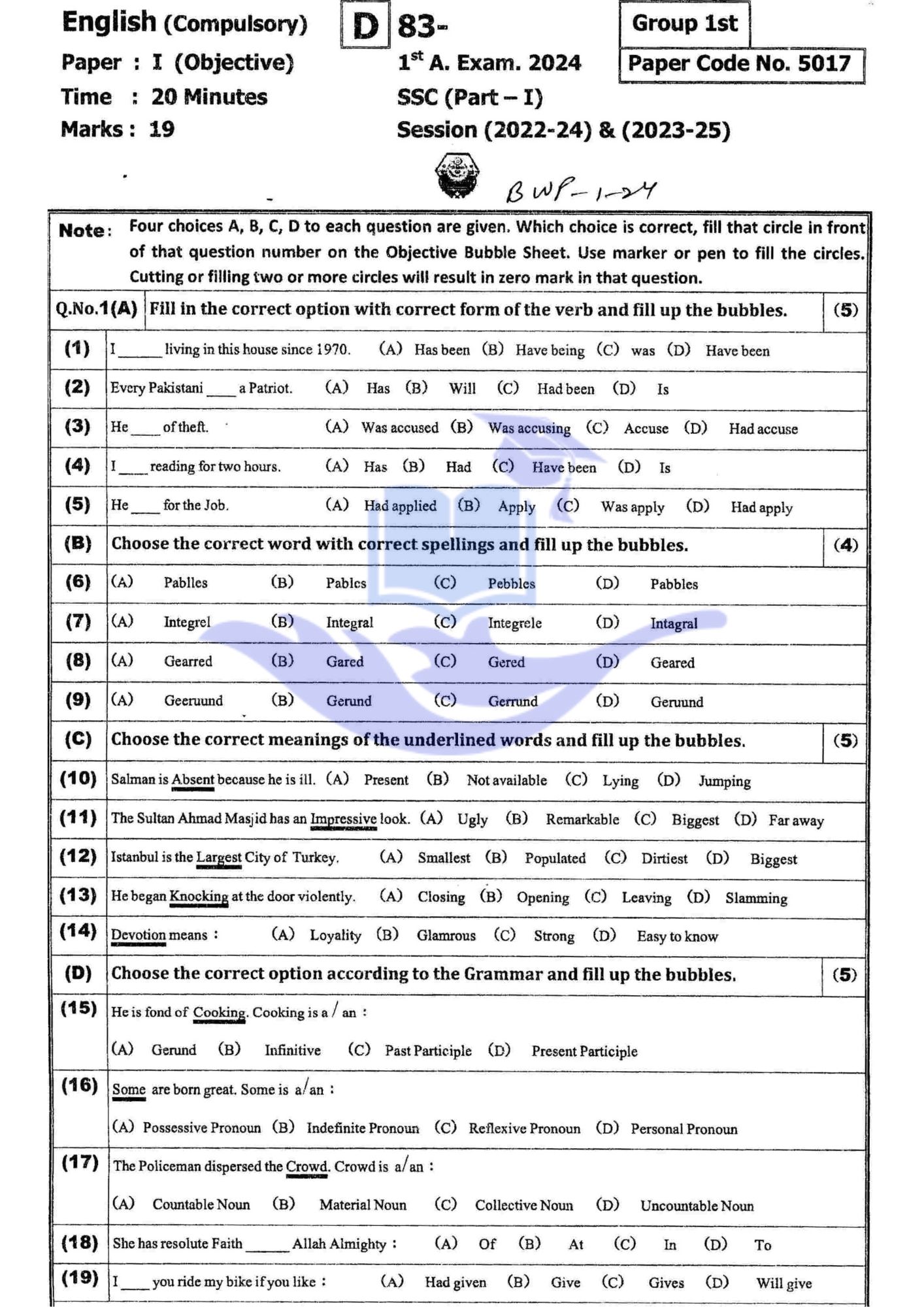 Bahawalpur Board 9th class English Past Papers 2024 Group I OBJECTIVE PARTDownload SUBJECTIVE PARTDownload English Past Papers 2024 Group II OBJECTIVE PARTDownload SUBJECTIVE PARTDownload